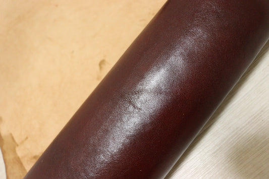 ds50円!イタリアンレザー ピットなめし ワインレッド アンチック加工 ベリー ヌメ革 70ds