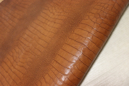 ds75円!イタリアンレザー イエローキャメル 絞り加工 クロコ型押し ショルダー ヌメ革 136ds