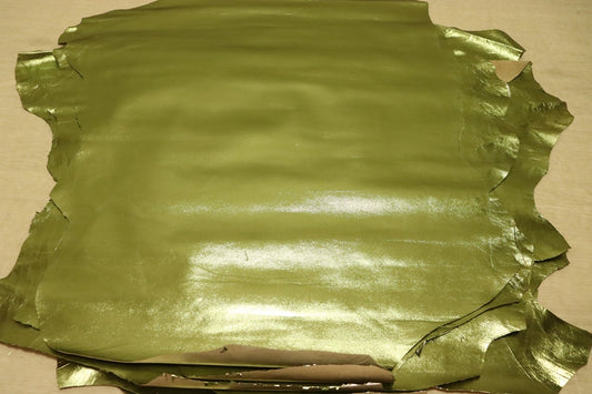 ds25円![グリーン系]新入荷 インポートレザー ひつじ革 クロム革 箔貼り加工 79ds