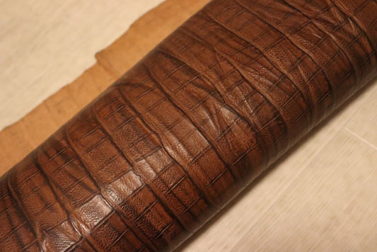 ds70円![レッドブラウン]新入荷 イタリアンレザー 牛革 ヌメ革 ショルダー クロコ型押し 120ds