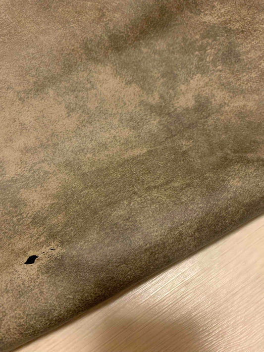 ds28円!新入荷!イタリアンレザー モカグレー ハギレ ムラ染プリント 147ds