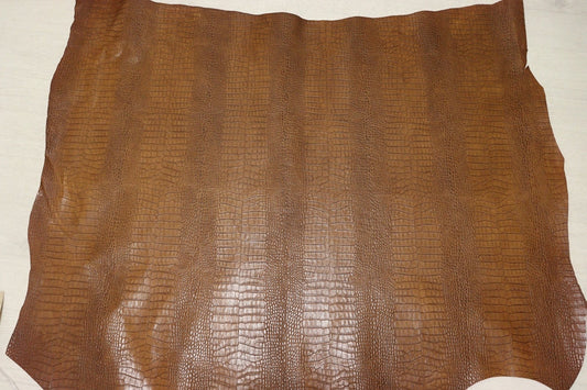 ds70円![キャメルブラウン]新入荷 イタリアンレザー 牛革 ヌメ革 ショルダー クロコ型押し 絞り加工 132ds