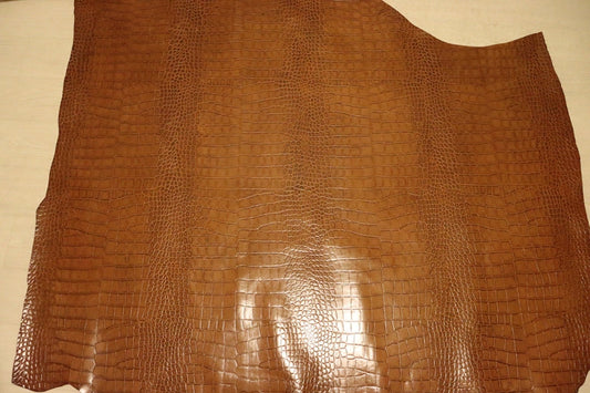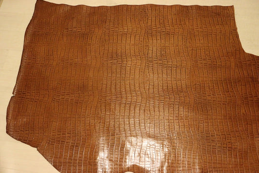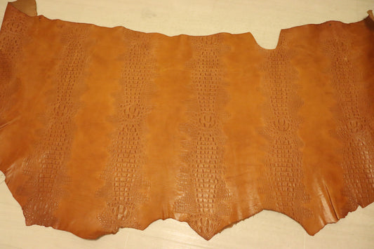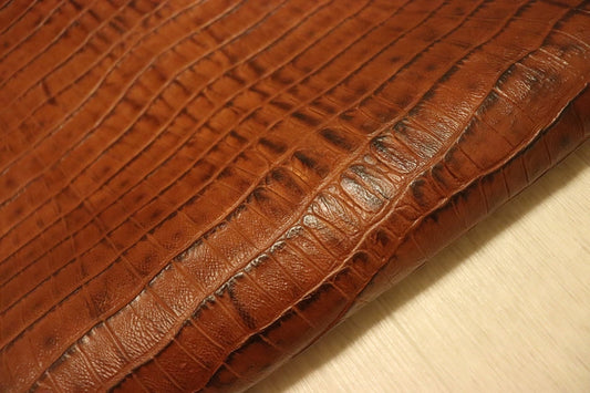 ds72円!イタリアンレザー ショルダー ヌメ革 背ワニ型押し キャメル 147ds