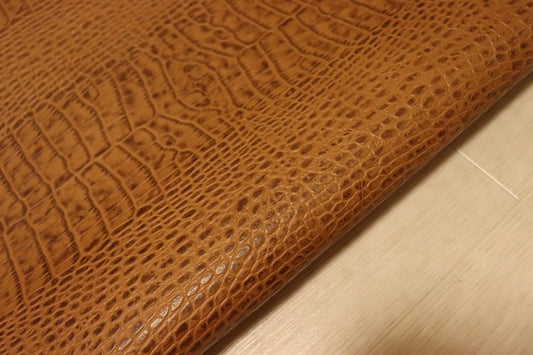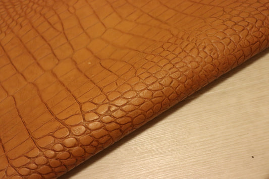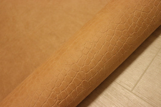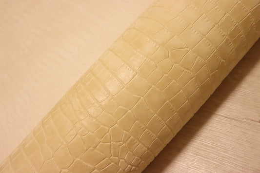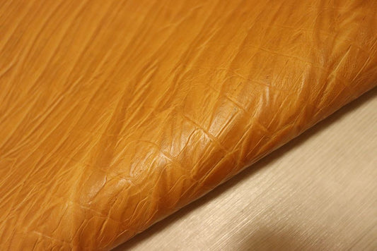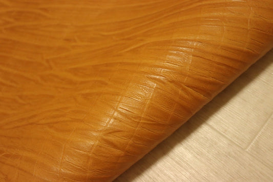 ds75円!イタリアンレザー イエローキャメル 絞り加工 クロコ型押し ショルダー ヌメ革 136ds