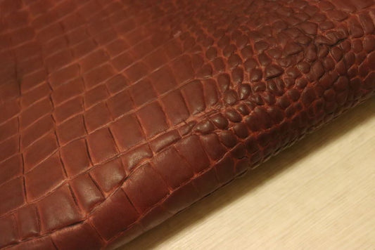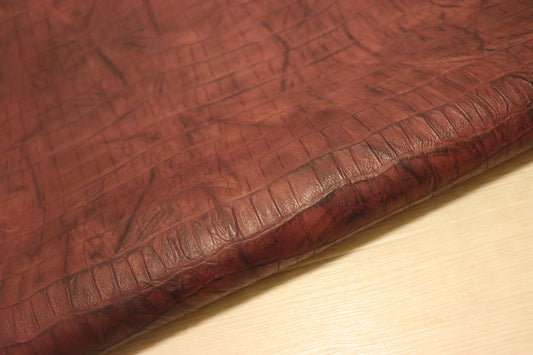 ds72円!イタリアンレザー ショルダー セミアニリン クロコ型押し ボルドー 130ds