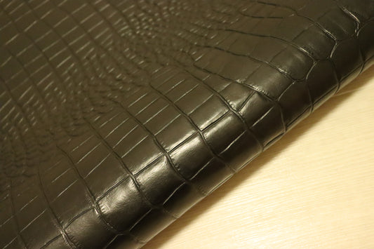ds72円!イタリアンレザー オイルヌメ ショルダー クロコ型押し ブラック 130ds