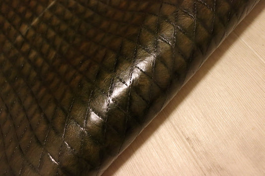 ds72円![ダークオリーブ]新入荷 イタリアンレザー 牛革 ヌメ革 ショルダー キルティング調型押し 上質 94ds