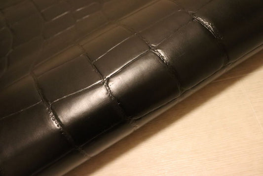 ds72円!イタリアンレザー オイルヌメ ショルダー クロコ型押し ブラック 130ds