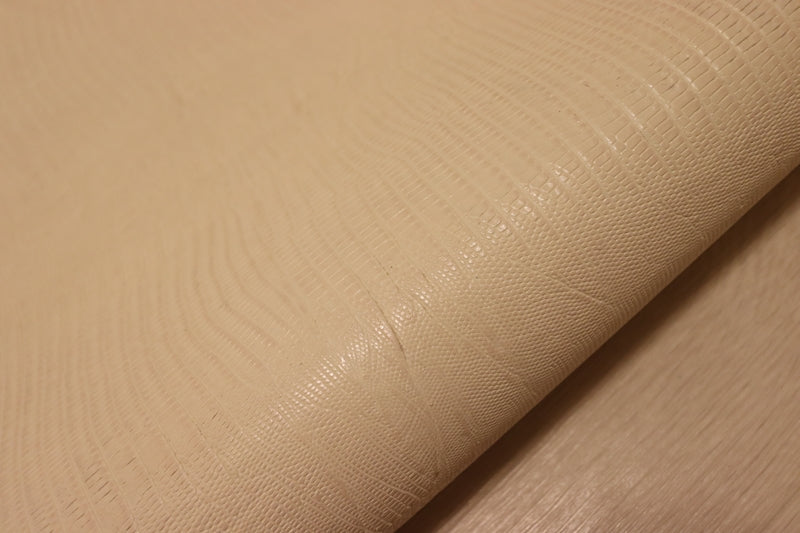 ナチュラルなクリームにエキゾチックなリザードが型押しされたエンボス加工