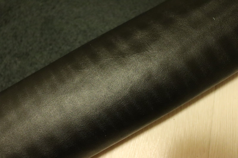 上品なブラックにチェック調の柄がプリントされたデザインレザー