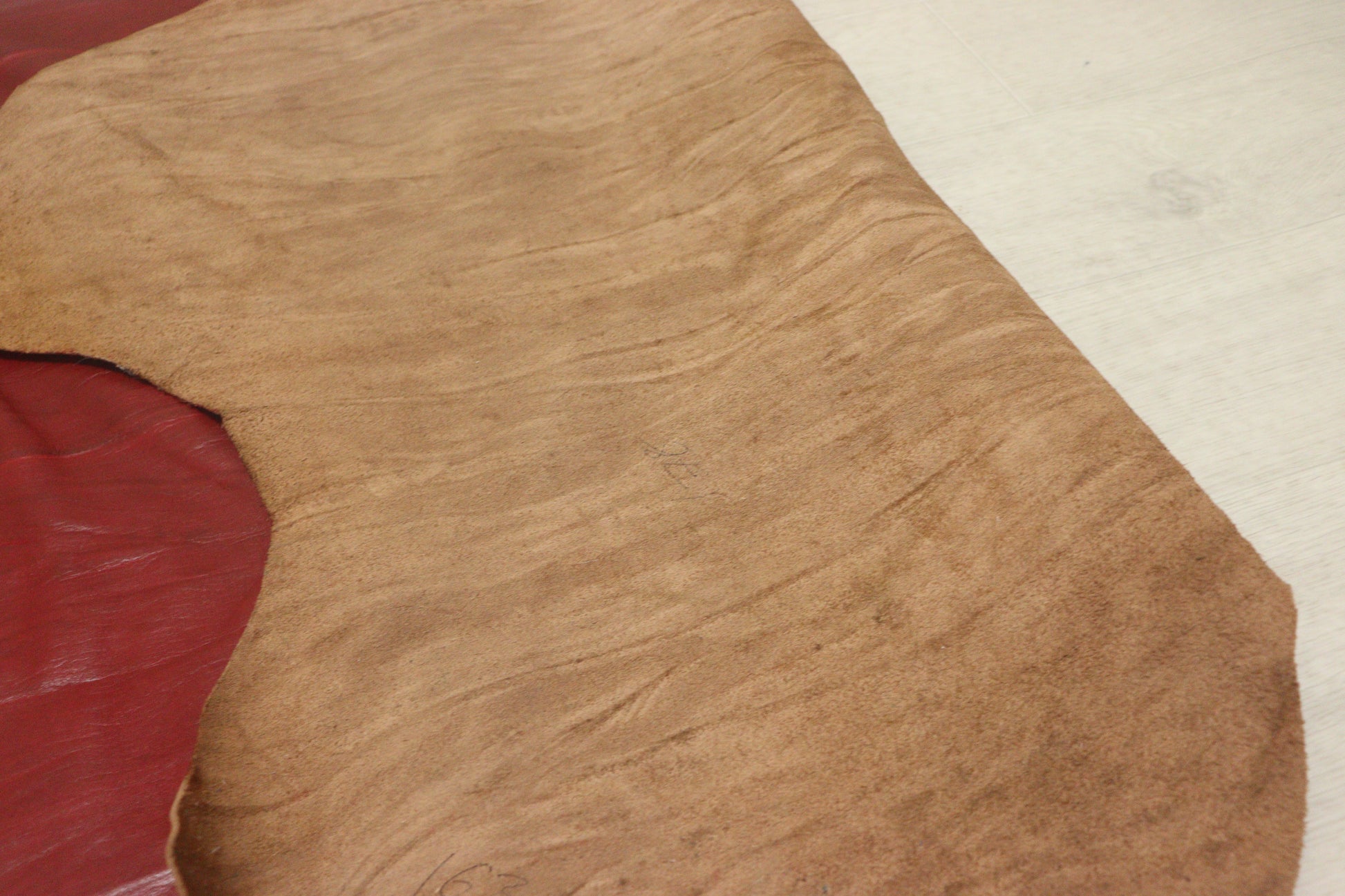 商品名 訳あり 絞り加工 レッド アニリン仕上げ ヌメ革 163ds