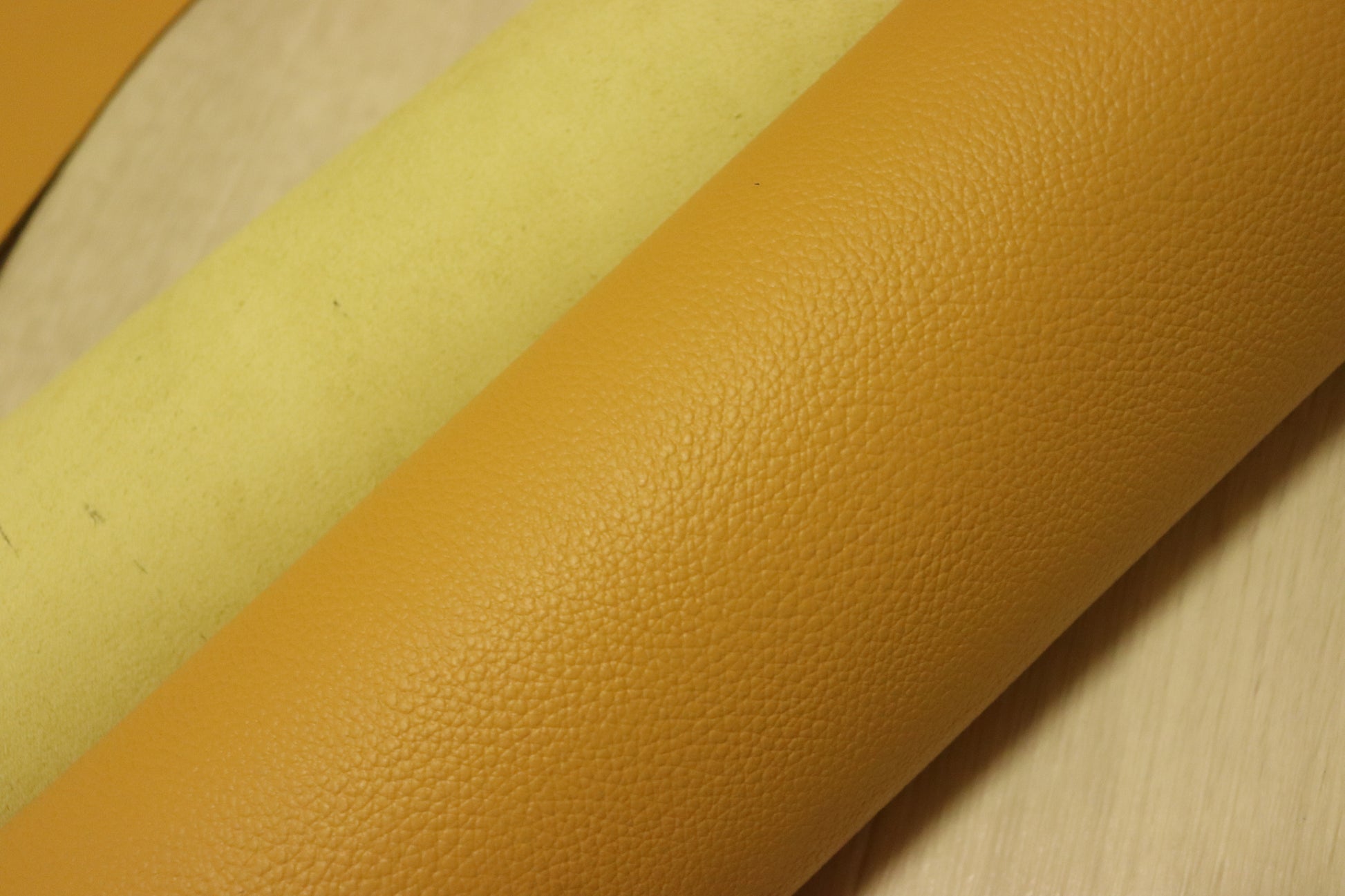 明るめなマスタードにシボが型押しされたエンボス加工です(^^♪