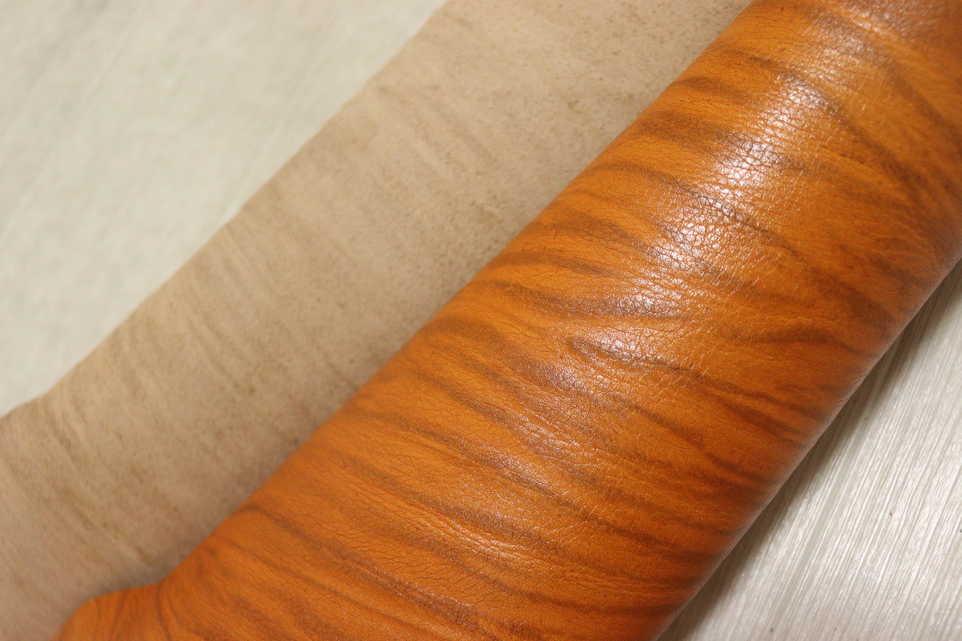 ds28円!訳あり 絞り加工 イエローキャメル アニリン仕上げ ヌメ革 90ds