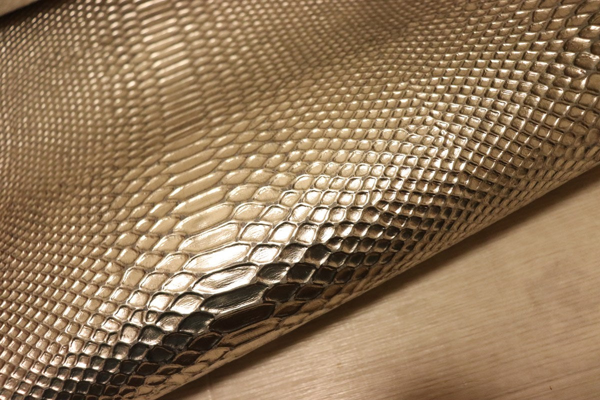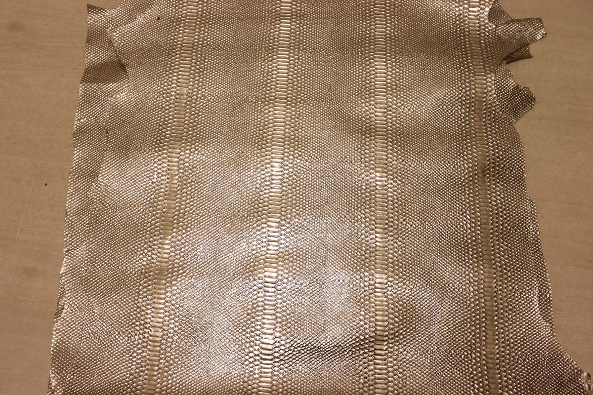 ds28円![シルバー系]新入荷 イタリアンレザー 牛革 クロム革 スネーク型押し 箔貼り加工 92ds