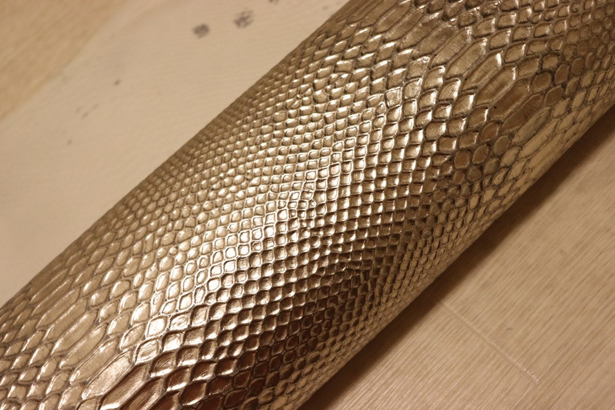 ds28円![シルバー]新入荷 イタリアンレザー 牛革 クロム革 スネーク型押し 箔貼り加工 94ds