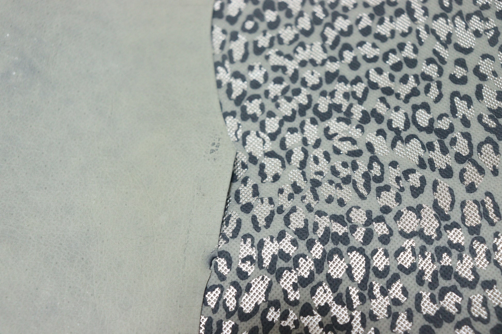 ds30円!新入荷!ヒョウ柄プリント 豚革 シルバー 120ds
