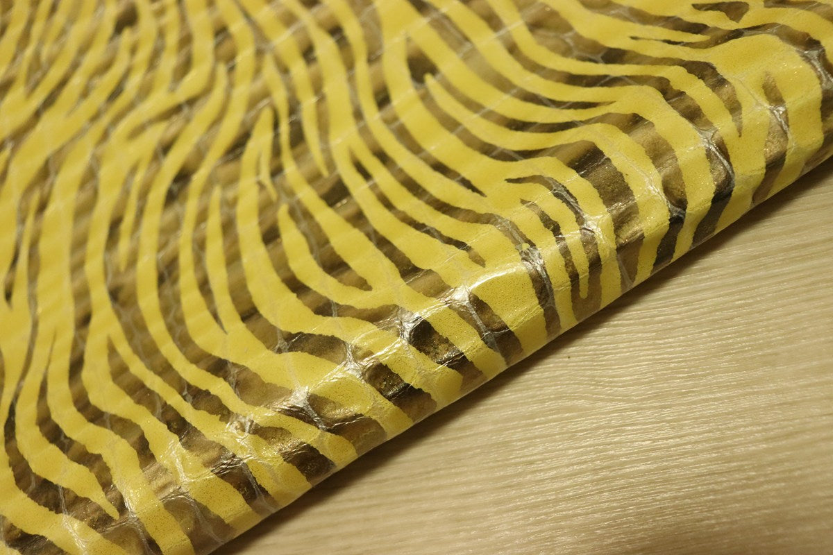 ds30円![イエロー]新入荷 イタリアンレザー 牛革 クロム革 ゼブラプリント エナメル 45ds