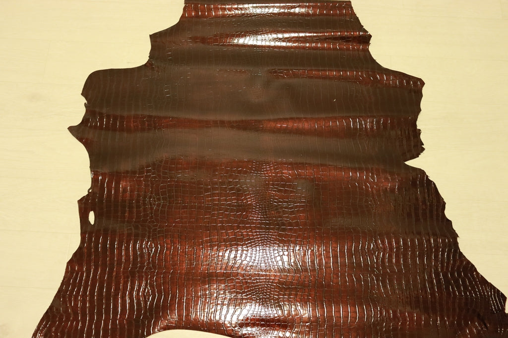 ds30円![チョコブラウン]新入荷!国産 牛革 エナメル クロコ型押し 75ds