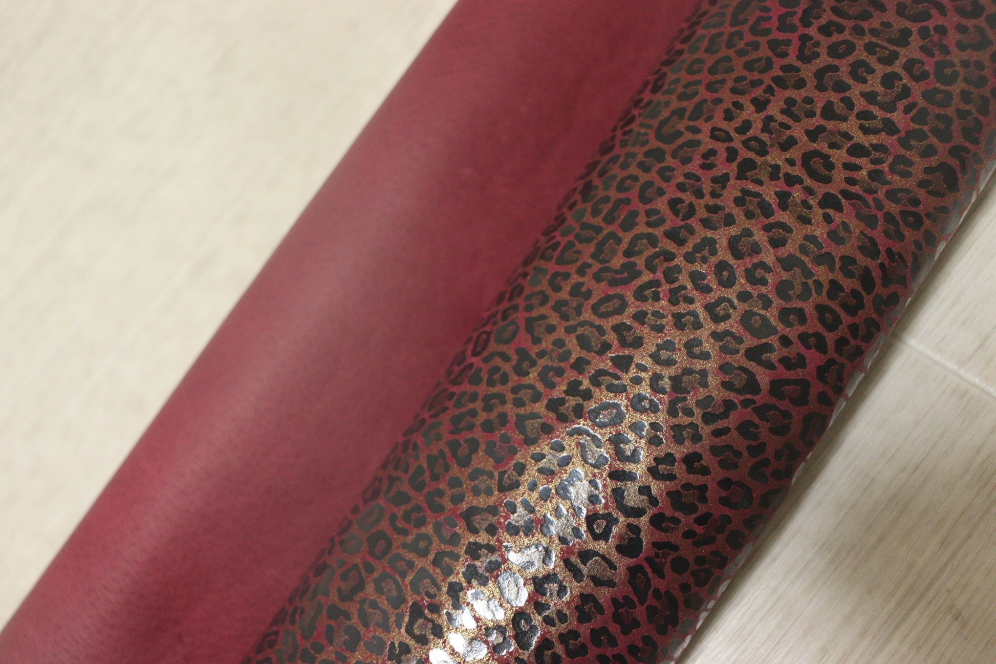 エキゾチックなヒョウ柄がプリントされたデザインレザーです