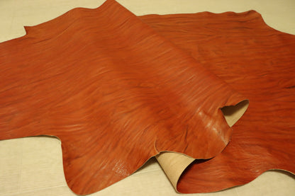 ds35円!新入荷!絞り加工 オレンジキャメル アニリン仕上げ ヌメ革 108ds