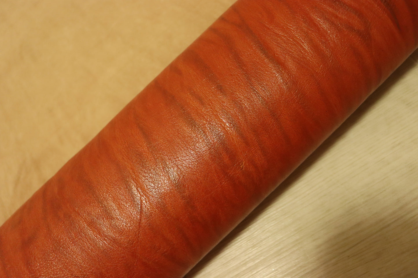 商品名 新入荷!絞り加工 オレンジキャメル アニリン仕上げ ヌメ革 108ds