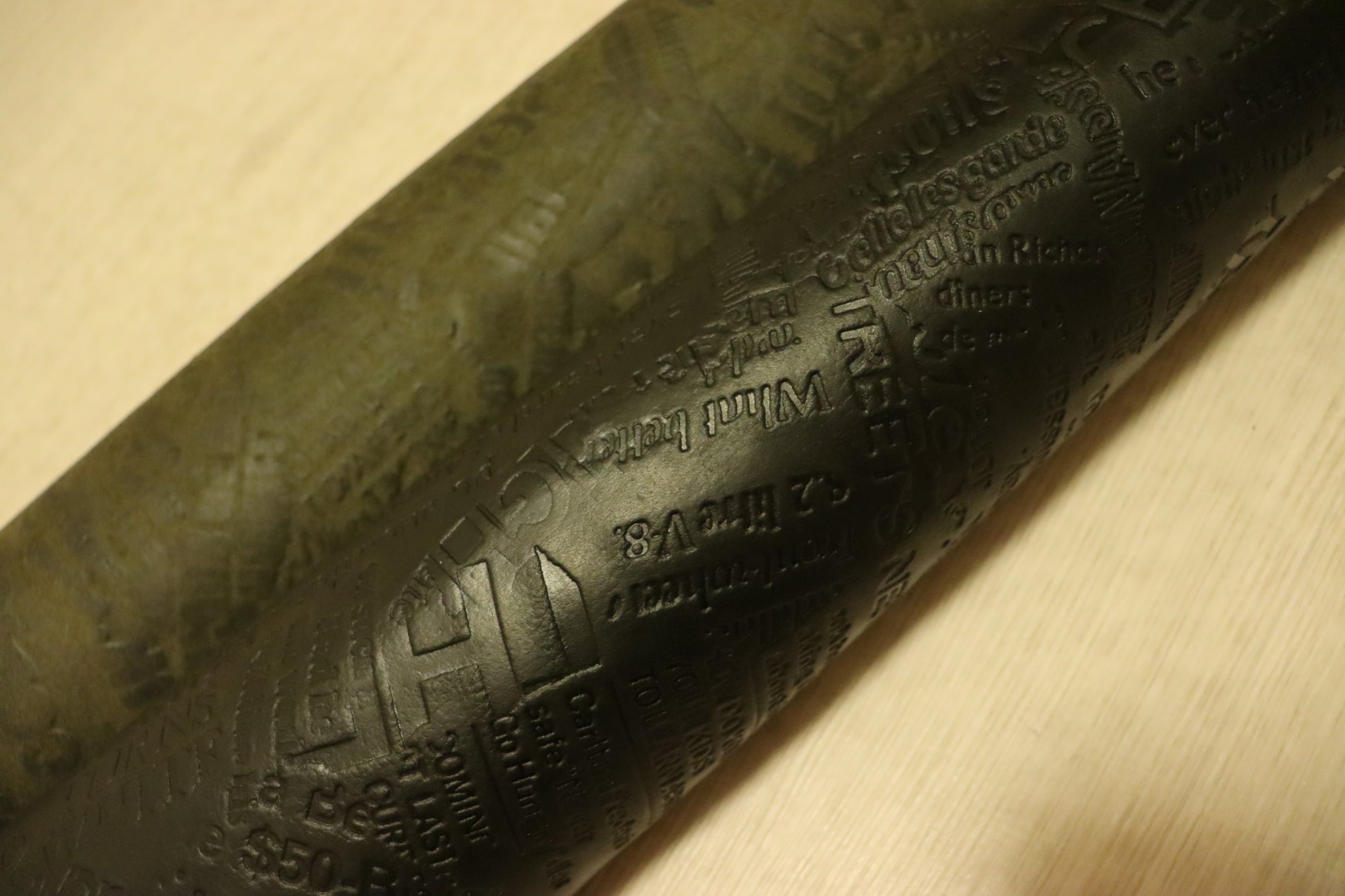 隅々までお使いいただける英字が型押しされたエンボス加工です