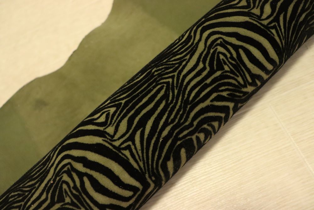 商品名 新入荷!イタリアンレザー フエルト調 グリーン ヤギ セブラ柄 42ds