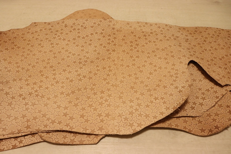 ds35円![生成り]クラフトの定番 バングラディシュレザー 牛革 ヌメ革 スター型押し 素上げ 75ds