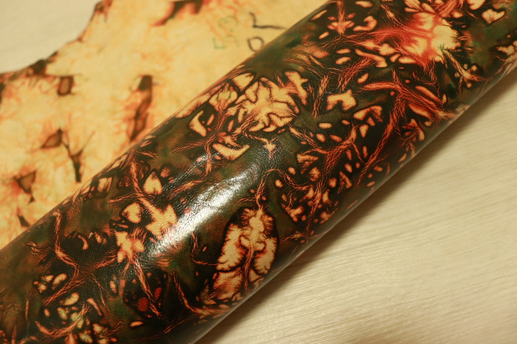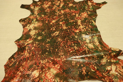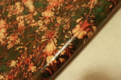 ds42円![カーキ]エレガントな作品にエジプトレザー ヤギ革 ヌメ革 花柄 手描き 53ds