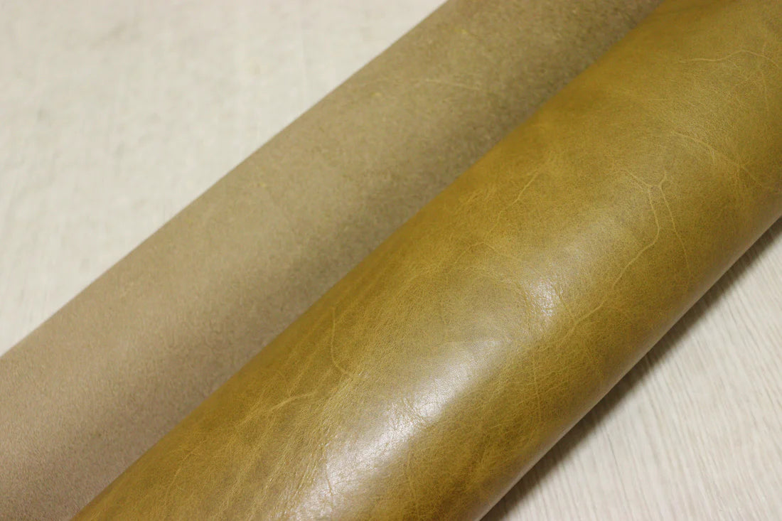 新入荷 イタリアンレザー オイルヌメ プルアップ加工 イエローブラウン 200ds