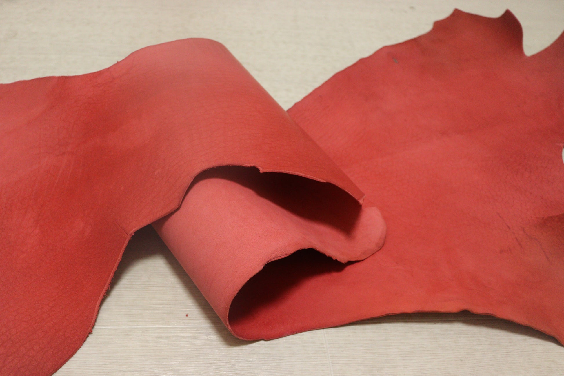 ds50円!新入荷!イタリアンレザー ベリー レッド ピットなめし ヌメ革 69ds