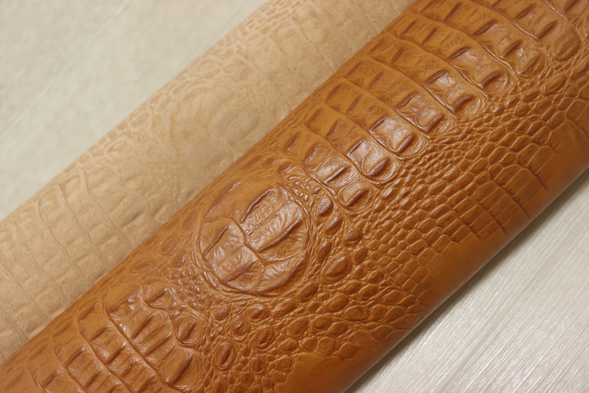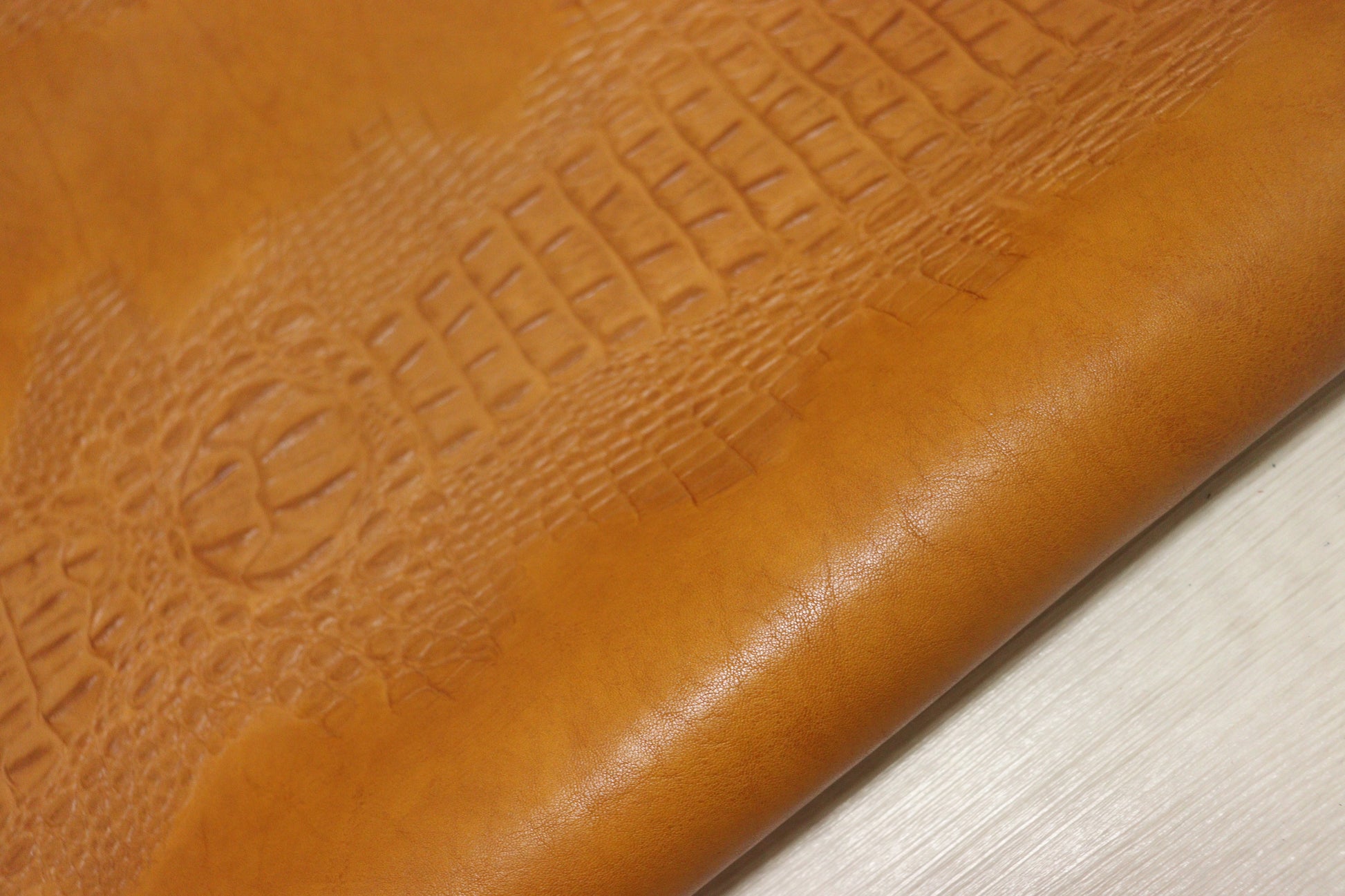 エキゾチックな背ワニが型押しされたエンボス加工です
