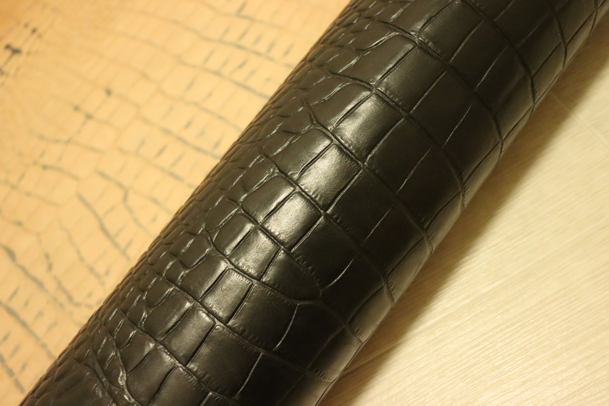 新入荷 イタリアンレザー オイルヌメ ショルダー クロコ型押し ブラック 130ds